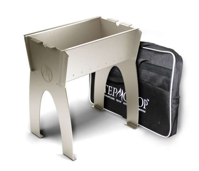 Разборная конструкция мангала позволяет использовать его в походных условиях при выезде на природу. Лёгкая сборка и разборка — что называется, «с полпинка». Прочная сталь толщиной 3 мм и ребра жесткости сохраняют геометрию мангала при большой нагрузке. В комплект поставки мангала на удлиненных ножках входит решетка-гриль и сумка.