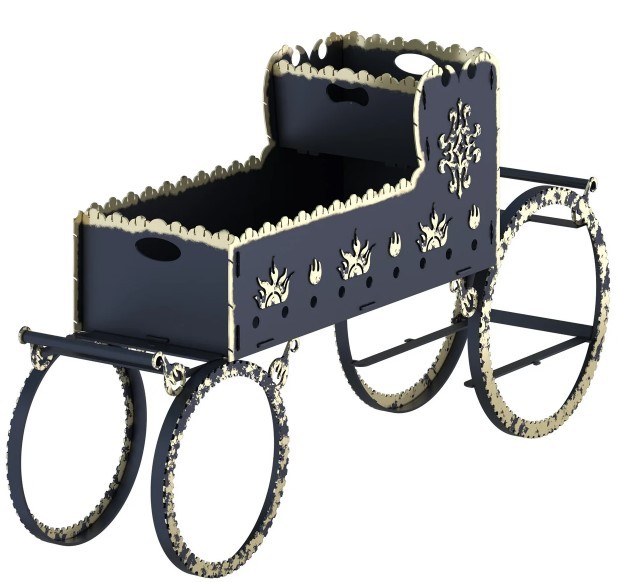Изготовлен методом современной станочной резки. Мангал для дачи оправдывает вложенные средства долгим сроком эксплуатации за счет толщины металла 4 мм. Для розжига топки мангала можно использовать — древесный уголь, осину, березу, дуб. Удобен для транспортировки в разобранном виде. Мангал обработан высокотемпературной краской и украшен кузнечной золотой патиной. Стандартный цвет мангала — черный.