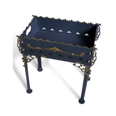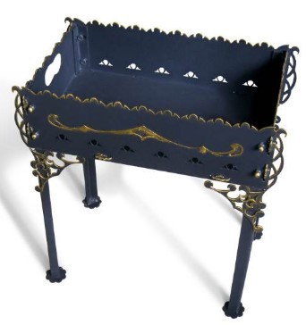 Изготовлен методом современной станочной резки. Мангал для дачи оправдывает вложенные средства долгим сроком эксплуатации за счет толщины металла 3 мм. Для розжига топки мангала можно использовать — древесный уголь, осину, березу, дуб. Удобен для транспортировки в разобранном виде. Мангал обработан высокотемпературной краской и украшен кузнечной золотой патиной. Стандартный цвет мангала — черный.