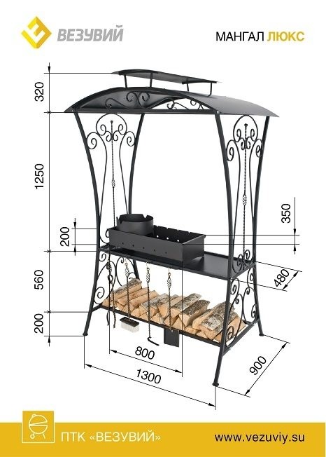 Мангал Везувий "Люкс" создан в эргономическом дизайне. Особенностью мангала является съемная печь под казан, которая позволяет при необходимости увеличить количество шампуров уложенных на мангал. Мангал удобен для хранения и транспортировки так как имеет сборно-разборную конструкцию.
