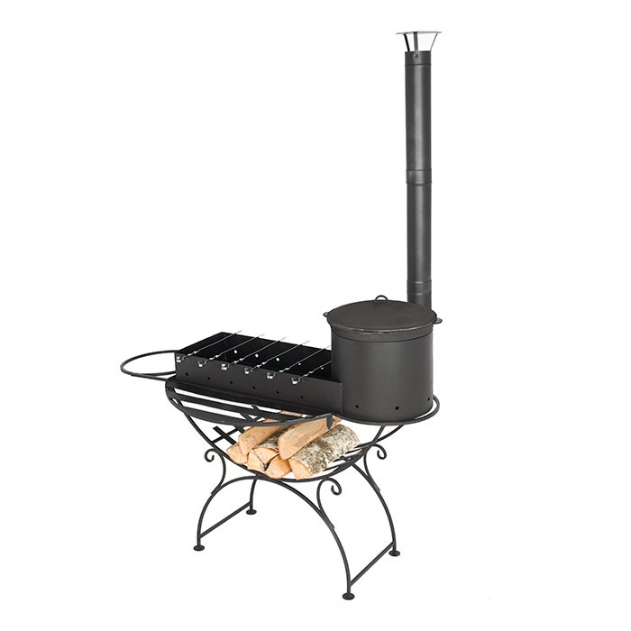 Мангал Везувий Удачный 12 литров предназначен для приготовления пищи на открытом воздухе. В состав мангала входит печь под казан 12 литров с высокой вытяжной трубой самоварного типа. Дым выходящий из трубы, не мешает окружающим. На мангале одновременно можно готовить на шампурах и казане.