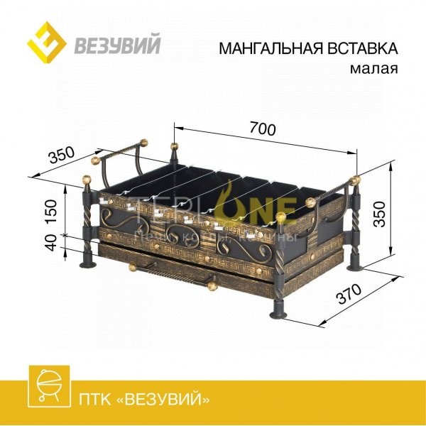 Мангальная вставка Везувий (малая) обеспечивает безопасность и комфорт при использовании мангала, а также экономию угля, чистоту и просто эстетический вид печного комплекса. Может быть установлена в портал кирпичного печного комплекса барбекю для приготовления пищи на углях вне помещений или на открытом воздухе, а также на кирпичную (бетонную) столешницу или в камин.