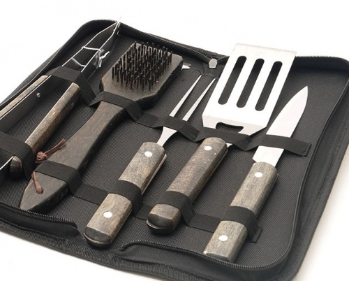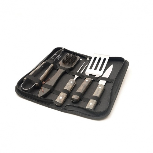 Компактный набор аксессуаров для барбекю состоит из 5 предметов, размещаемых в тканевом пенале. В составе набора: