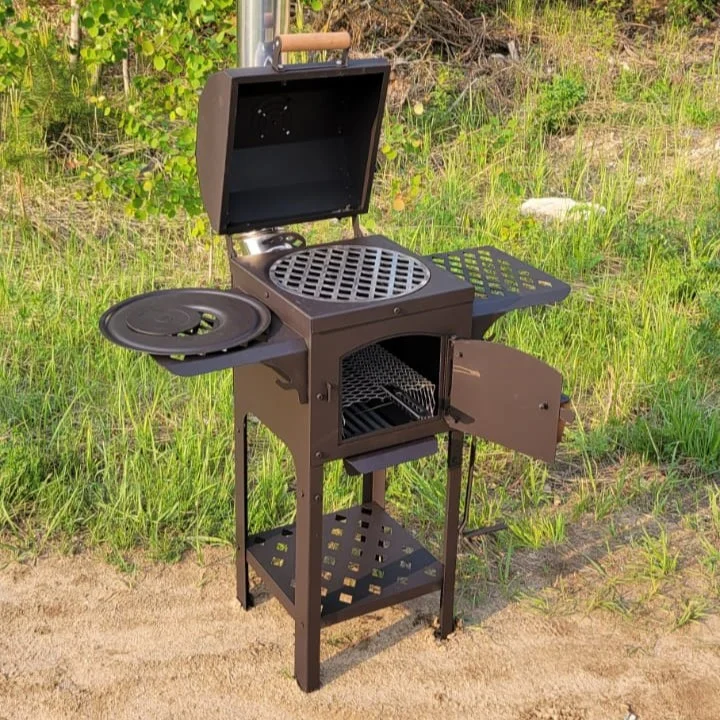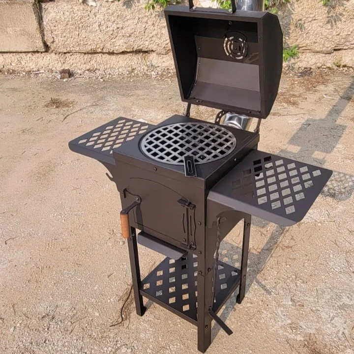 Универсальная кухня СМАК ПЛЮС это многофункциональное устройство для приготовления пищи на открытом воздухе. Вмещает в себе гриль, барбекю, коптильню горячего копчения, а также печь под казан. Кухня с патрубком под дымоход, изготовлена из стали толщиной 2 мм, покрыта термостойкой краской. Имеется шибер для управления пламенем. По бокам съемные полки. Под основанием полка для инвентаря Два варочных кольца позволяют изменять размер отверстия в зависимости от посуды. Съемная решетка гриль AISI 304 3мм Крышка с термометром Решетка для щепы, ЦПВС 2 мм. Для отвода золы из топочной камеры в зольник печь имеет чугунный колосник. Зольный ящик параллельно выполняет функцию поддувала. Наша разборная универсальная кухня СМАК ПЛЮС чрезвычайно удобна на даче, в продолжительном походе или кратковременном выезде на природу.
