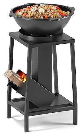 Подставка. Каркас подставки исключает прямое соприкосновение с горячими стенками и уменьшает опасность случайно обжечься во время топки печи и готовки на ней. Печь Везувий Ракета Союз не займёт много места в саду, может быть установлена на любом ровном основании. Её легко скрыть в укромном уголке от глаз гостей. Устойчивость печи позволяет готовить на ней в большой объёмистой посуде, включая тяжёлые чугунные казаны объёмом до 16 литров.