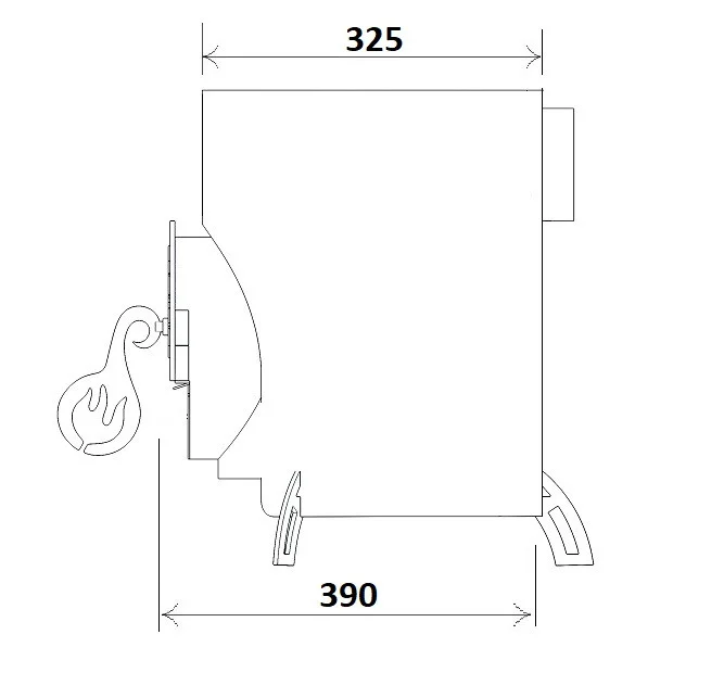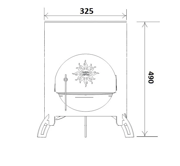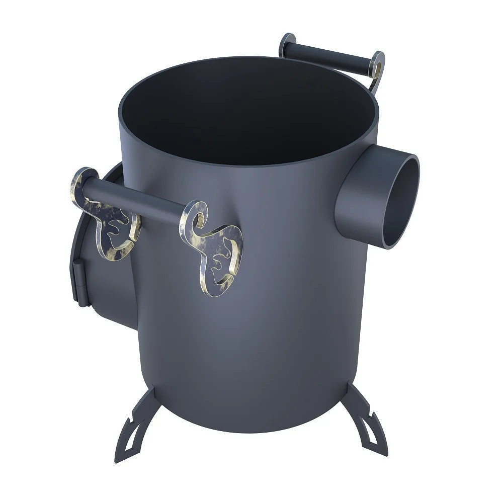 Печь для казана выполнена из стали толщиной 8 мм. Дверка выполнена в стиле бренда ТМ «Царь-Печи», зольный ящик позволяет не только регулировать подачу воздуха и регулировку тяги, но и собирает золу с дальнейшем ее удалением (совок). Выход дымохода диаметром 115 мм. Для установки трубы необходим угол 90 гр.