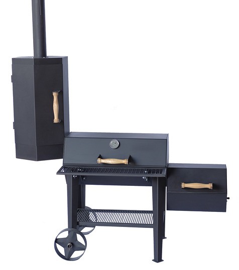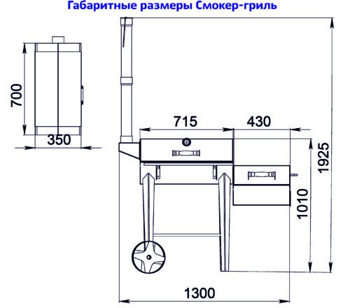 Смокер-гриль «Сибирь» в сборе — универсальный аппарат для приготовления мяса, рыбы и овощей. Конструкция сочетает в себе барбекю, гиль, коптильни холодного и горячего копчения. Фактически — 4 в 1. Внешне выглядит как усовершенствованное классическое барбекю.