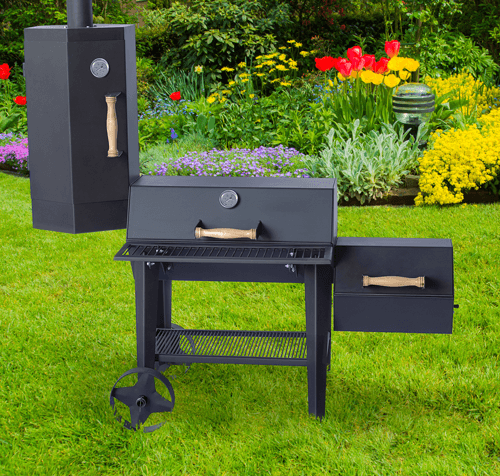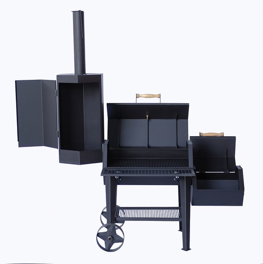 Смокер-гриль «Сибирь» в сборе с каналом для стока жира и специальными отверстиями в печи для установки градусников