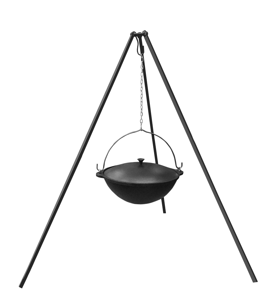 Тренога под казан Везувий - это приспособление из трех опор, позволяющее вешать над огнем посуду в которой готовится пища. Опоры соединены в верхней точке благодаря чему тренога для казана будет устойчиво стоять даже на неровной поверхности. Разборная конструкция треноги позволит взять ее с собой при выезде на природу.