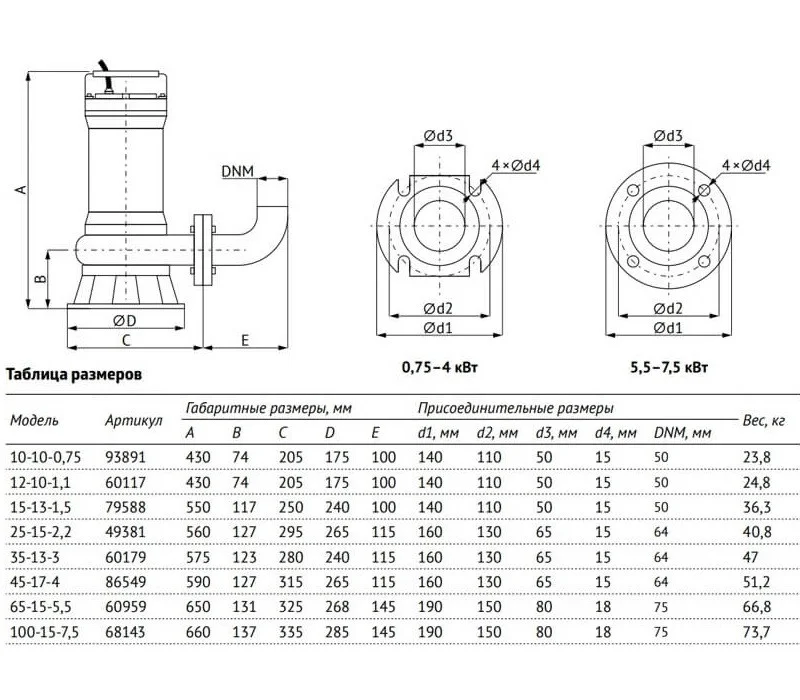 | Тип насоса | дренажный, фекальный |