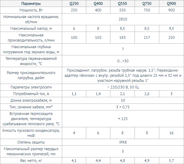 | Тип насоса | дренажный |