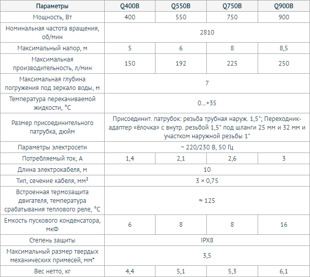 * - в перекачиваемой воде допускается кратковременное и незначительное содержание неволокнистых частиц размером до 35 мм (например, ил, песок, глина).
