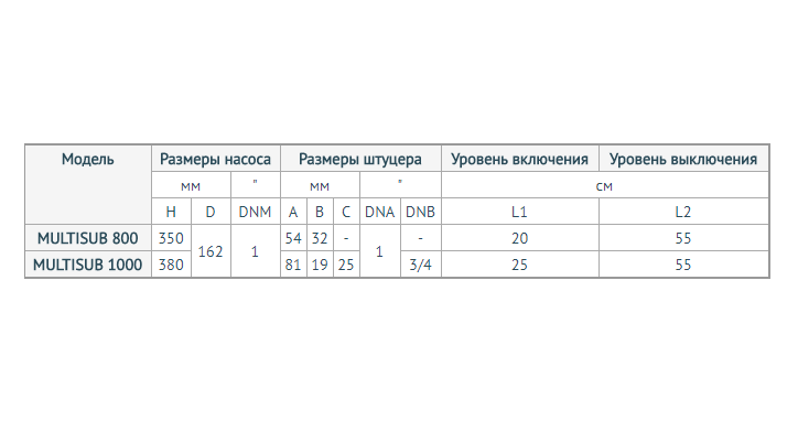 | Наименование | MULTISUB 800 | MULTISUB 1000 |