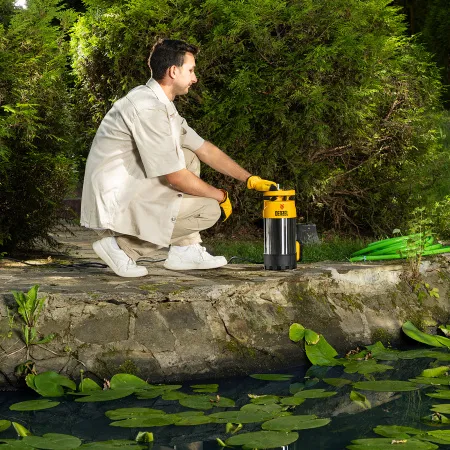 Погружной насос Denzel PH1100 мощностью 1100 Вт и производительностью 5500 л/ч создает напор до 40 м и используется для подачи чистой воды под давлением до 4 бар из резервуара, водоема и колодца, даже если он находится далеко от участка. Позволяет организовать систему орошения и водоснабжения на даче. Скорости работы до 91 л/мин и напора до 40 м достаточно для подачи воды на верхние этажи в несколько точек водоразбора.