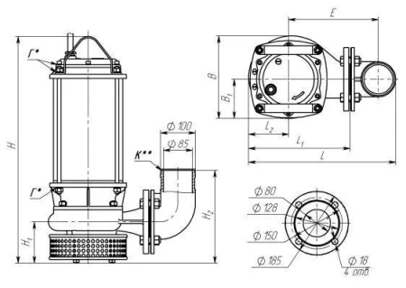 Дренажный насос Eneral Гном 100-25 380В, погружной, чугун, мощность: 11000 Вт, производительность: 100 м³/ч, максимальный напор: 25 м, глубина погружения: 7 м