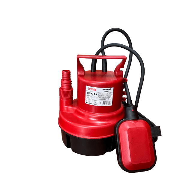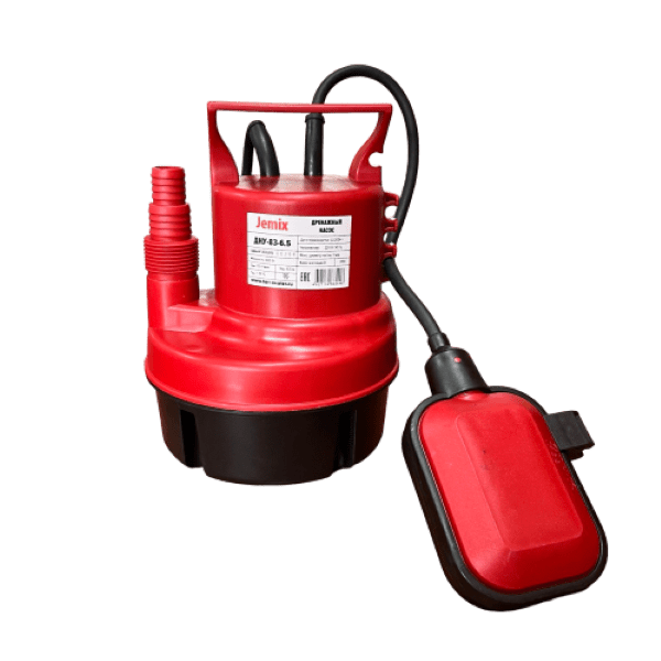 Дренажный насос JEMIX ДНУ-83-6,5, производительность 83 л/мин, напор 6,5 м, мощность 400 Вт, кабель 6 м, пластик, поплавковый выключатель