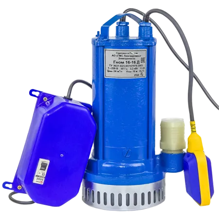Дренажный насос Ливгидромаш Гном 16-16Д 220В с поплавком, погружной, чугун, мощность: 2200 Вт, производительность: 16 м³/ч, максимальный напор: 16 м, глубина погружения: 7 м
