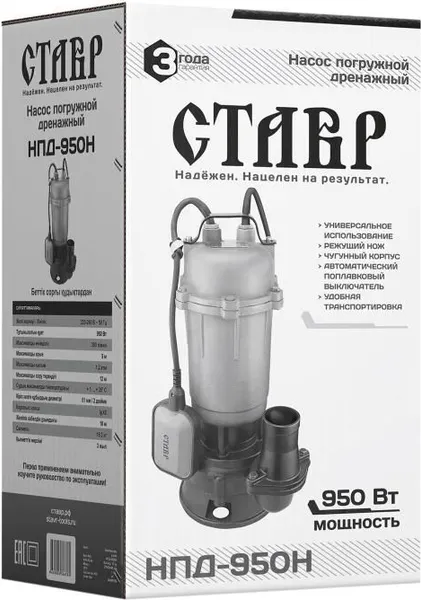 Дренажный насос Ставр НПД-950Н, погружной, чугун, производительность 18 м³/ч, мощность 950 Вт, напор 12 м, глубина погружения 5 м