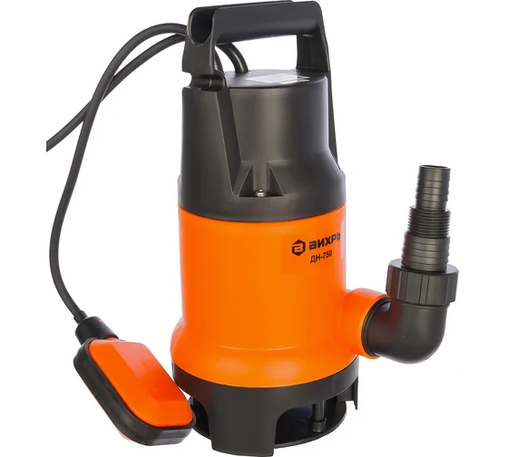 Дренажный насос оснащен поплавковым выключателем для предотвращения работы «всухую». Длина кабеля поплавка настраивается в зависимости от дебета водоема, чтобы двигатель отключался при достижении минимального или максимального уровня воды. В модели Вихрь ДН-750 нижний забор воды, это необходимо учесть при установке уровня выключения насоса. Количество срабатываний не должно превышать 20 в час.