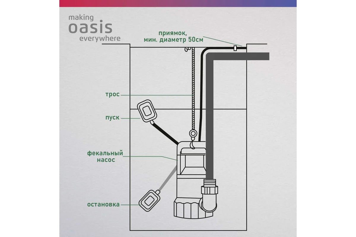 Фекальные насосы making Oasis everywhere – это практичное и функциональное решение для поддержания чистоты и безопасности вашего водоснабжения.
