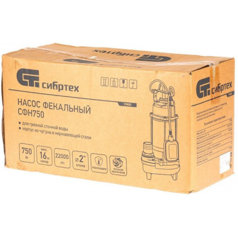 Фекальный насос Сибртех СФН750 мощностью 750 Вт и производительностью 22000 л/ч обеспечивает напор 16 м и позволяет перекачивать как чистую, так и грязную воду с частицами диаметром до 25 мм на глубине до 5 м. Диаметр штуцера для шланга составляет 2 дюйма. Насос справляется с откачкой нечистот из выгребных ям, септиков и канализаций. Скорости перекачки хватит для организации дренажной системы осушения затапливаемых помещений и установки принудительной канализационной системы. Напора достаточно для установки систем полива на даче.