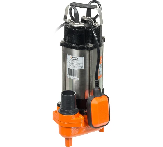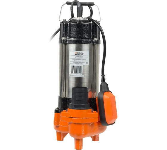Фекальный насос Вихрь ФН-750, погружной, чугун/нержавеющая сталь, мощность: 750 Вт, производительность: 21 м³/ч, максимальный напор: 15 м, глубина погружения: 9 м