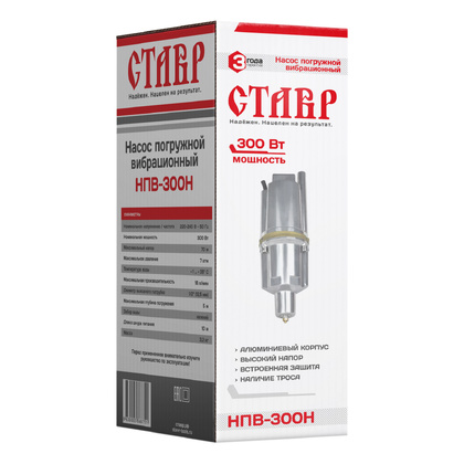 Колодезный насос Ставр НПВ-300Н, вибрационный, алюминий, производительность 1,08 м³/ч, мощность 300 Вт, напор 70 м, глубина погружения 5 м
