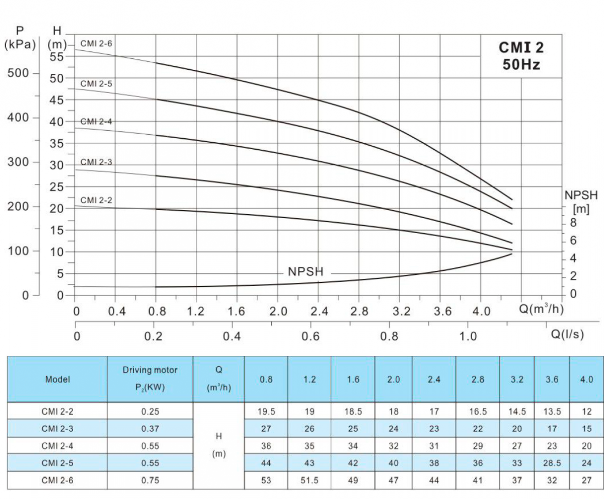 Многоступенчатый горизонтальный насос CMI2-6 - 750 Вт, производительность 4.3 м3/час, напор 56.5 м