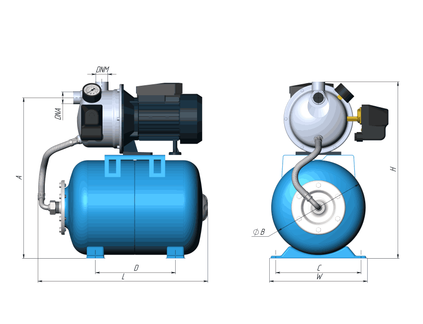 Предназначены для подачи чистой воды из скважин, колодцев и других источников и поддержания давления воды в системе водоснабжения в автоматическом режиме. Станции автоматического водоснабжения на базе самовсасывающих центробежных поверхностных насосов JS НЕ оснащены эжектором. Насосная станция состоит из поверхностного насоса, гидроаккумулятора (24 л), изготовленного из нержавеющей стали, реле давления PM/5 и манометра.