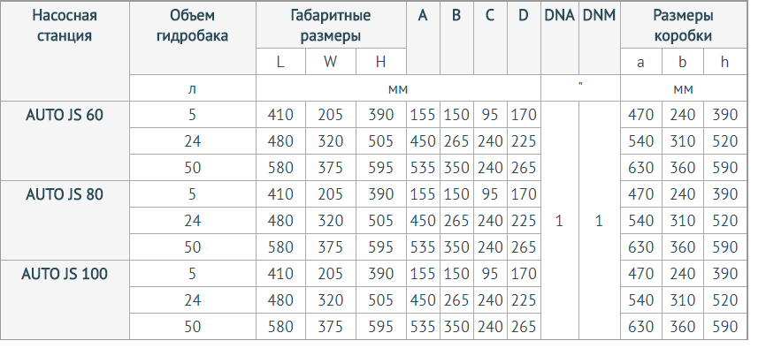 | AUTO JS 60 | 0,45 | Напор, м | 33 | 27 | 20 | 13 | 5 | - | - | - |