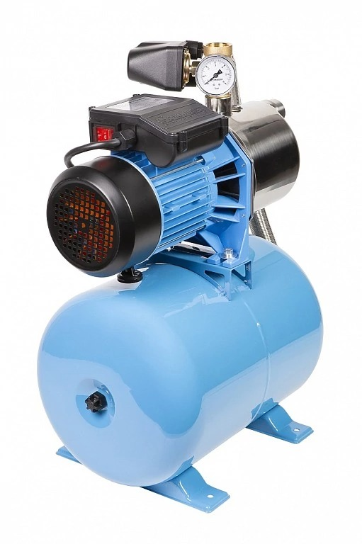 Насосная станция Джилекс Джамбо 70/50 Н-24 состоит из насоса и горизонтального гидроаккумулятора объемом 24 литра, реле давления, манометра, соединительной арматуры и электрокабеля с вилкой. Имеет производительность 4,2 м3 в час и напор 50 метров, корпус насоса выполнен из нержавеющей стали, а гидроаккумулятор из углеродистой стали. Используется для создания комфортных условий пользования водой при пониженном давлении в трубопроводе. В управлении работой насоса применяется реле давления РДМ-5, которое позволяет насосной станции автоматически включаться и выключаться по давлению воды.