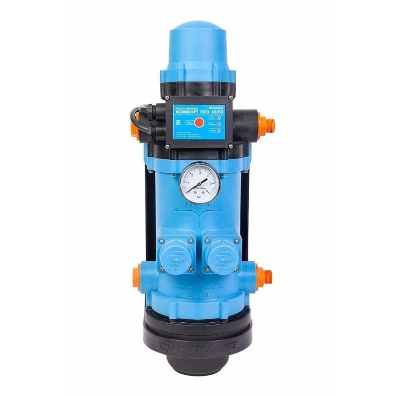 Уникальная разработка - насос-автомат Комфорт ПРО комплектуется встроенным регулирующим клапаном, который стабилизирует напор в водопроводной магистрали при изменениях значений расхода воды.