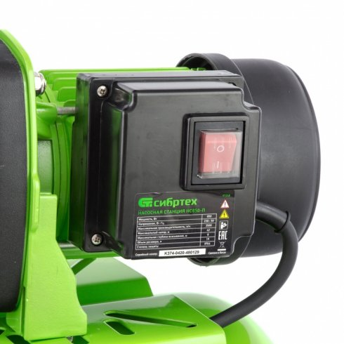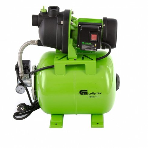 Насосная станция Сибртех НС850-П, поверхностный, материал: пластик, объем гидроаккумулятора 19 л, производительность 3.5 м³/ч, напор 42 м, мощность 850 Вт