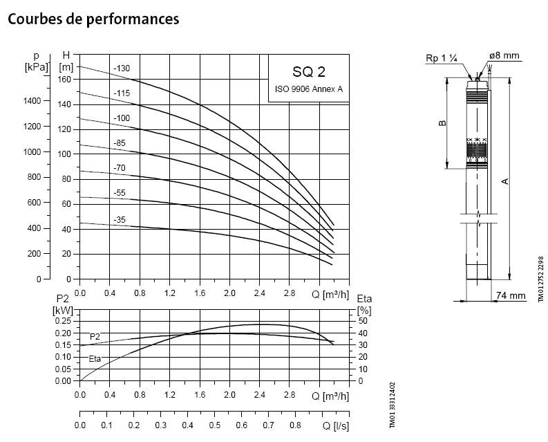 | Диаметр насоса, мм (дюймов) | 74 (3") |