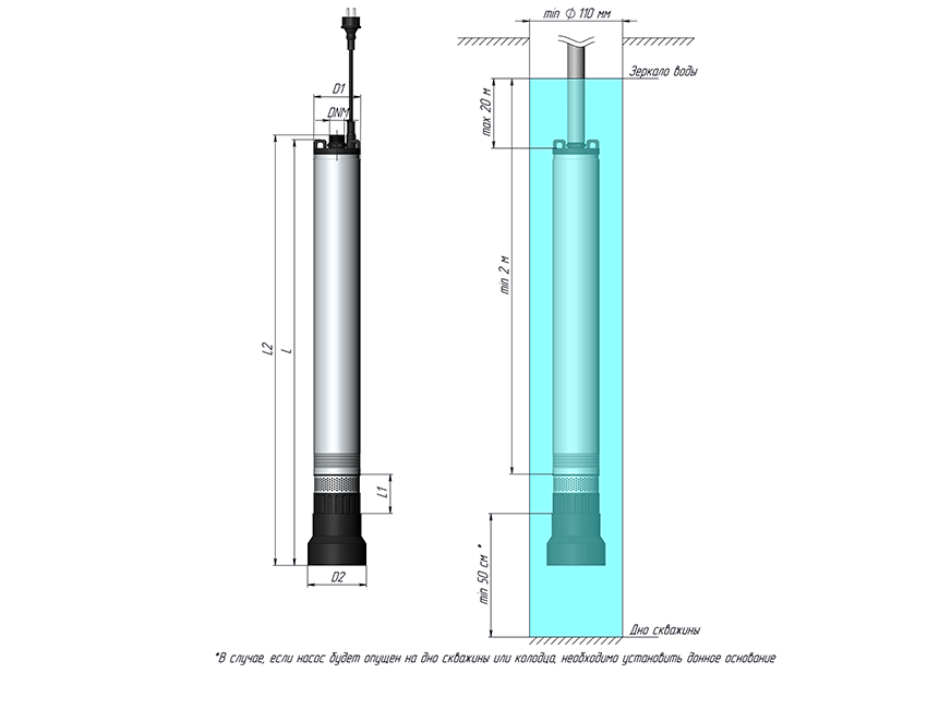 | Макс. глубина погружения под зеркало воды, м | 20 |