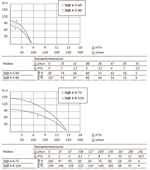 | Параметры | 4-3-60 | 4-3-80 | 4-8-75 | 4-8-110 |