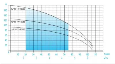 Погружной насос центробежного типа Aquario ASP3B-140-100BE служит для подачи чистой нейтральной по кислотности воды с примесью песка не более 180 г/куб. м размером не более 0.5 мм из скважин диаметром не менее 105 мм с погружением под зеркало воды не глубже 150 метров. Насос можно ограничено применять в узких и глубоких колодцах. Установка предназначена для бытового использования в частных или промышленных целях не более 4-5 часов в сутки. Запитывается от бытовой однофазной переменной сети 180- 240 В/ 50 Гц.