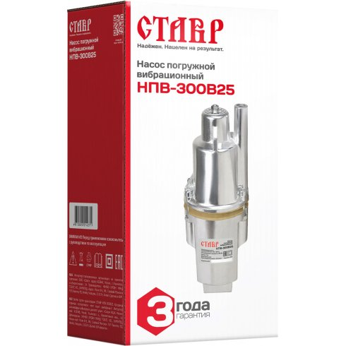 Скважинный насос Ставр НПВ-300В25, погружной, вибрационный, алюминий, производительность 1,08 м³/ч, мощность 300 Вт, напор 70 м, глубина погружения 5 м