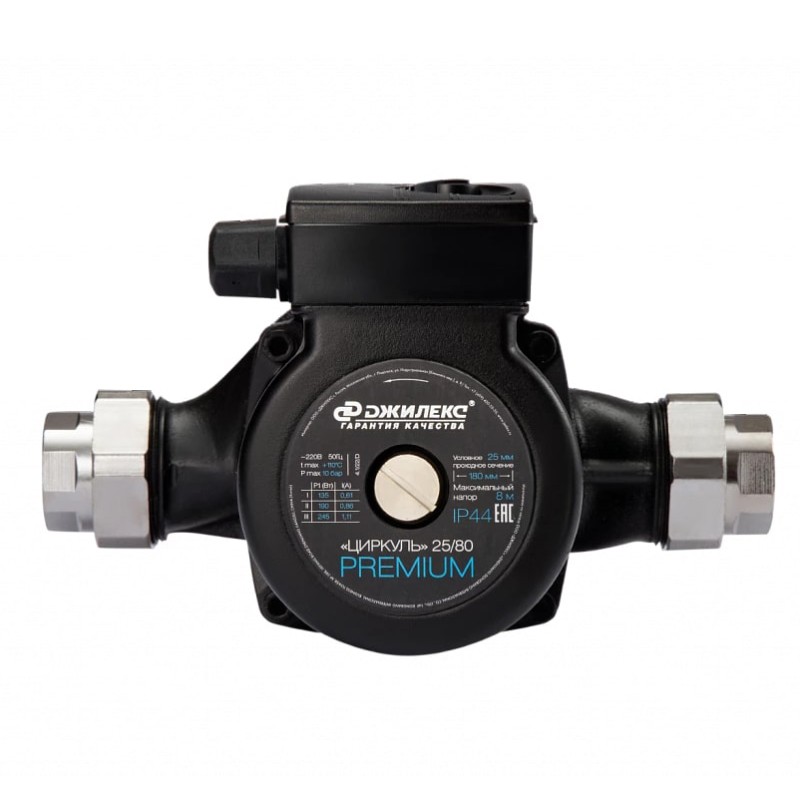 Циркуляционный насос Джилекс ЦИРКУЛЬ 25/80 PREMIUM, производительность 110 л/мин, мощность 245 Вт, напор 8 м, монтажная длина 180 мм