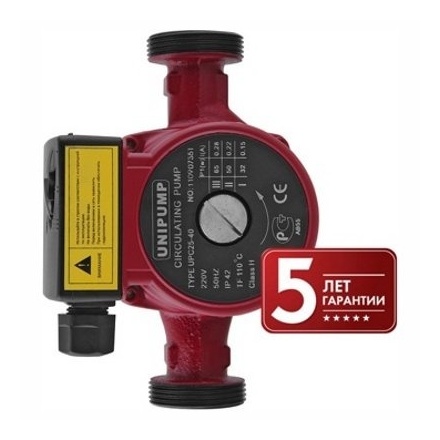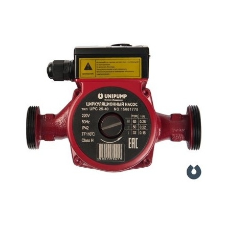Насос циркуляционный UNIPUMP UPC 25-40 180 резьбовой с «мокрым» ротором, производительность 3.5 м³/ч, напор 4 м, давление 10 бар