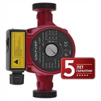 Насос циркуляционный UNIPUMP UPC 25-40 180 с «мокрым» ротором предназначен для перекачивания рабочих жидкостей в системах отопления при стабильном или слабо меняющемся расходе. Насосы имеют три ступени мощности, регулировка мощности производится механическим трехпозиционным переключателем.