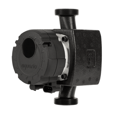 Корпус насоса выполнен из чугуна, а рабочее колесо из технополимера. Вал двигателя и подшипники изготовлены из керамики, а гильза статора – из нержавеющей стали. В комплект входят монтажные фитинги с резьбой 1”.