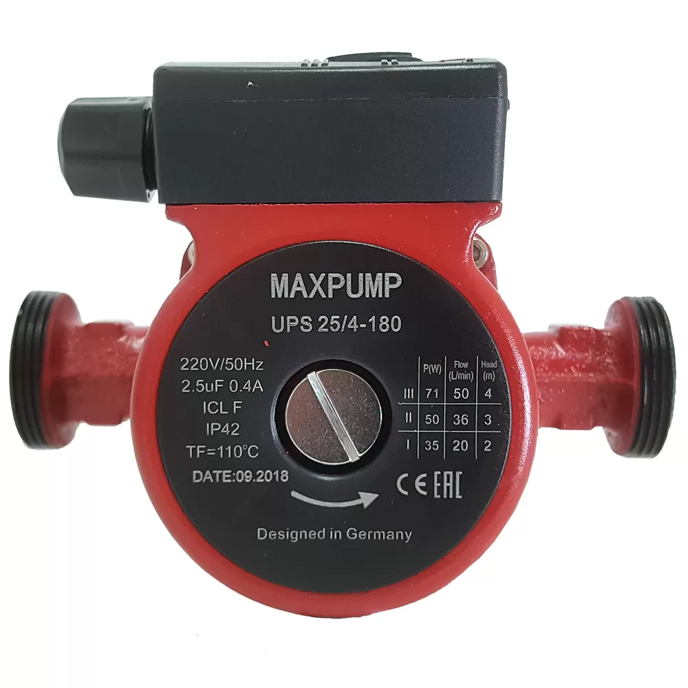 Циркуляционный насос MUXPUMP UPS 25/4-180, чугун, мощность 71 Вт, максимальный расход 3 м³/час, максимальный напор 4 м, класс защиты IP44