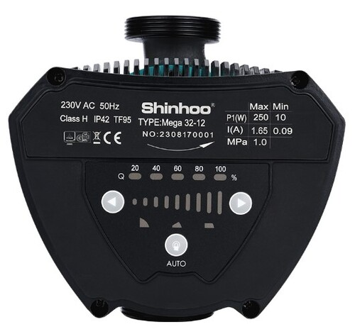 Циркуляционный насос Shinhoo MEGA 32-12, поверхностный, чугун, максимальный напор 12 м, производительность 11 м³/ч, мощность 250 Вт, мокрый ротор
