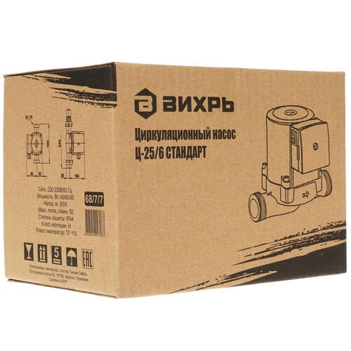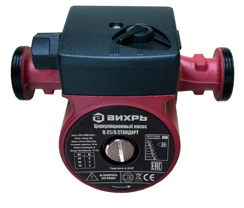 Циркуляционный насос Вихрь Стандарт Ц-25/6, алюминий, максимальный напор 6 м, производительность 3 м3/ч, мощность 90 Вт, класс защиты IP44