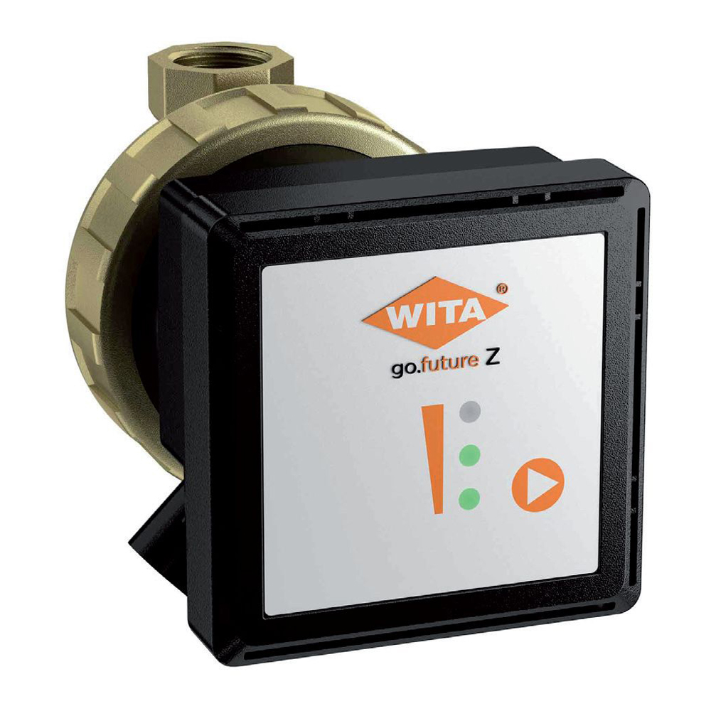 Высокоэффективный циркуляционный насос с электронной регулировкой частоты вращения, оборудованный электронно–коммутируемым двигателем с ротором с постоянными магнитами. Насос оснащен датчиком температуры и функцией таймера для максимального контроля линии рециркуляции. Корпус насоса изготовлен из латуни. Насос предназначен для систем рециркуляции ГВС.