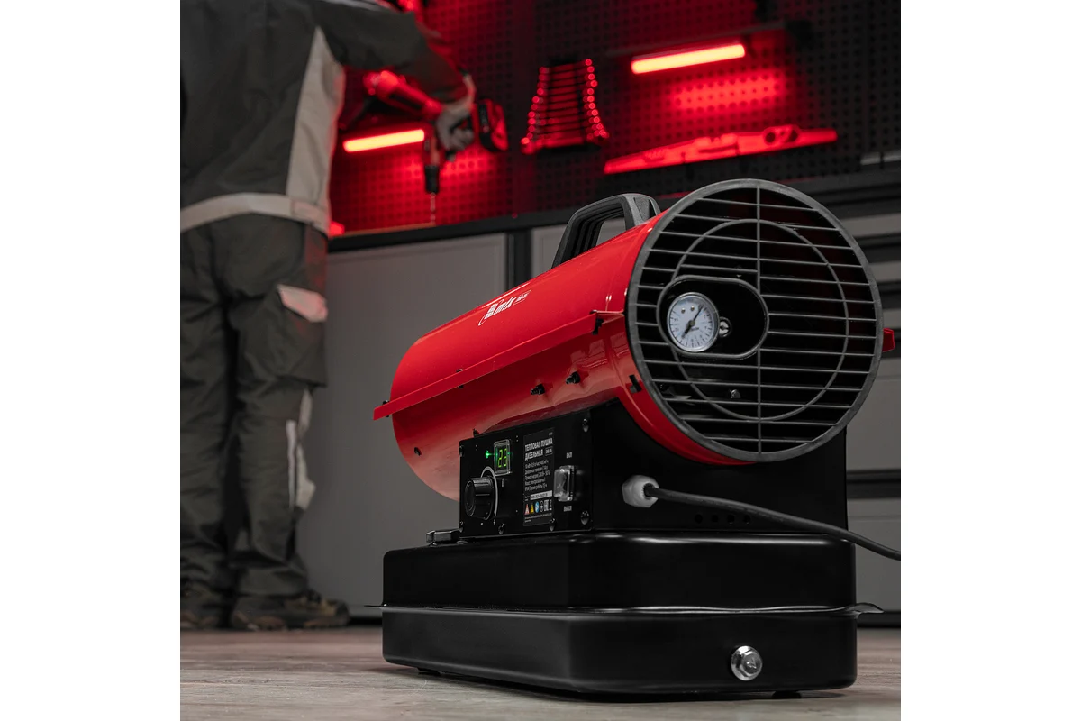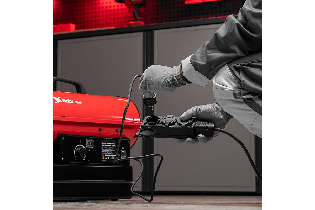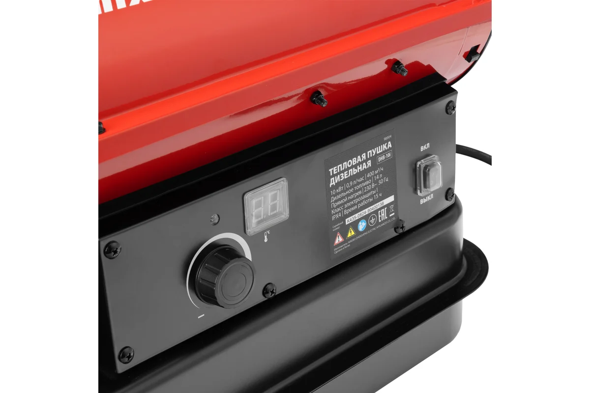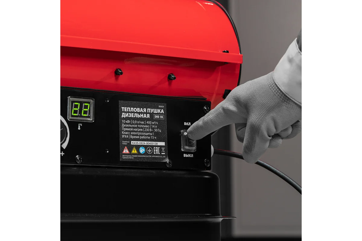 Дизельная тепловая пушка MTX DHB-10i тепловой мощностью 10 кВт и производительностью 400 м3/ч, с прямым типом нагрева и термостатом, предназначена для обогрева складов, цехов, теплиц и других нежилых помещений. Также используется на производстве и в строительстве: для прогрева бетона, просушки стен и разморозки траншей. Важно: в обогреваемом помещении необходимо обеспечить хорошую вентиляцию!