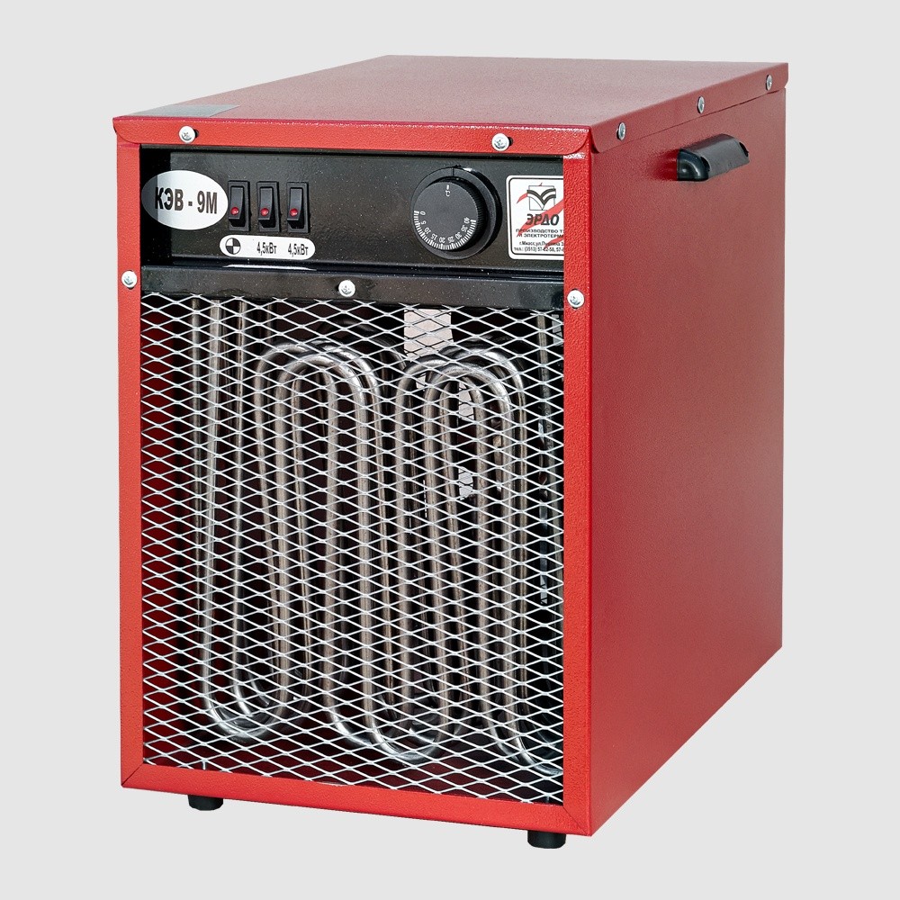 Электрокалорифер КЭВ предназначен для получения тепловой энергии в различных технологических процессах в условиях производственных, служебных, складских и аналогичных помещений. Калорифер состоит из корпуса, внутри которого установлены трубчатые электронагреватели (ТЭН), двигатель с вентилятором и пульта управления. Калорифер для зашиты от перегрева снабжен термовыключателем (аварийным датчиком), который отключает нагреватели в случае нагрева без обдува. Управление мощностями производится тремя выключателями. Калорифер оснащен терморегулятором, который позволяет автоматически поддерживать в помещении заданный температурный режим.