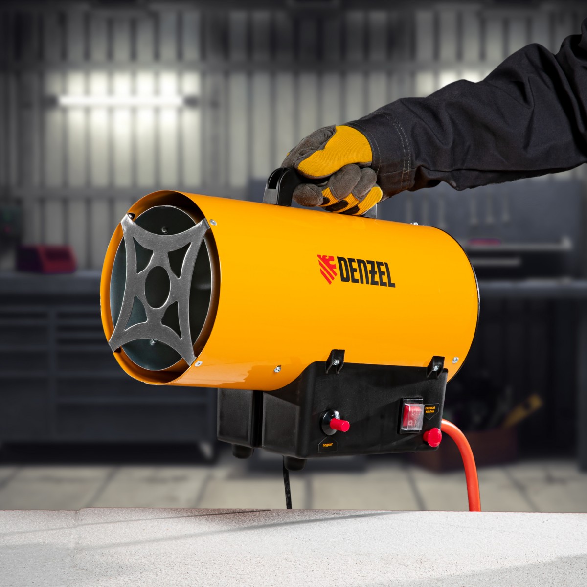 Газовая тепловая пушка Denzel GHG-15, 500 м3, цифровой термостат, пропан-бутан, мощность 15 кВт, производительность 500 м3/час, площадь обогрева 150 м2, защита от перегрева