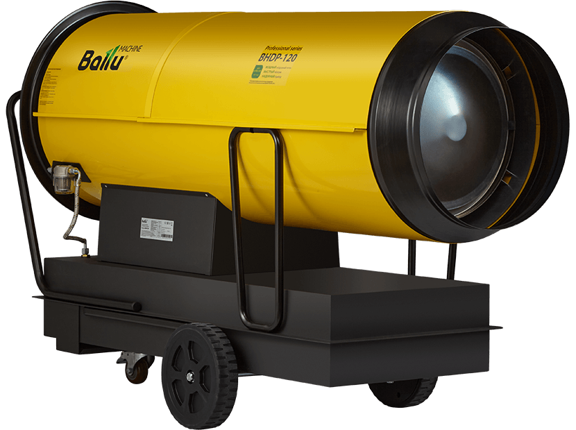 Пушка дизельная прямого нагрева Ballu BHDP-120: производительность 4000 м3/час, мощность 120 кВт, гарантия 12 мес., для обогрева нежилых помещений и локального прогрева рабочих поверхностей